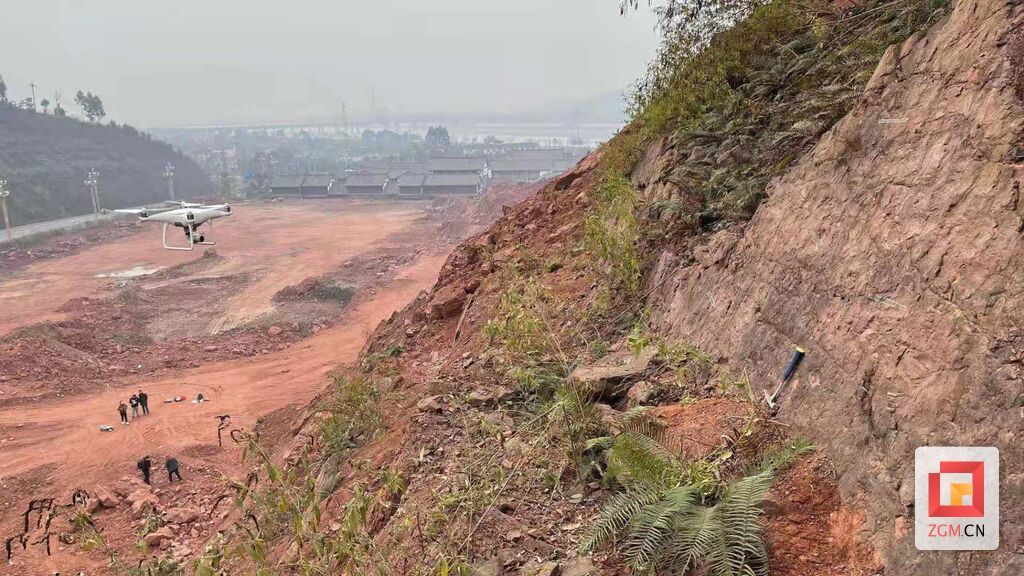▲考察人员用无人机进行影像采集,发现两个恐龙足迹