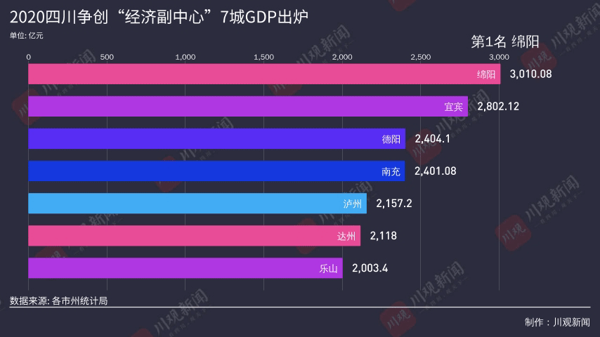绵阳、德阳、乐山、宜宾、泸州、南充、达州等7个城市,是省委确定的区域中心城市,也是争创副中心的种子选手。2020年,它们表现如何?一起来看!