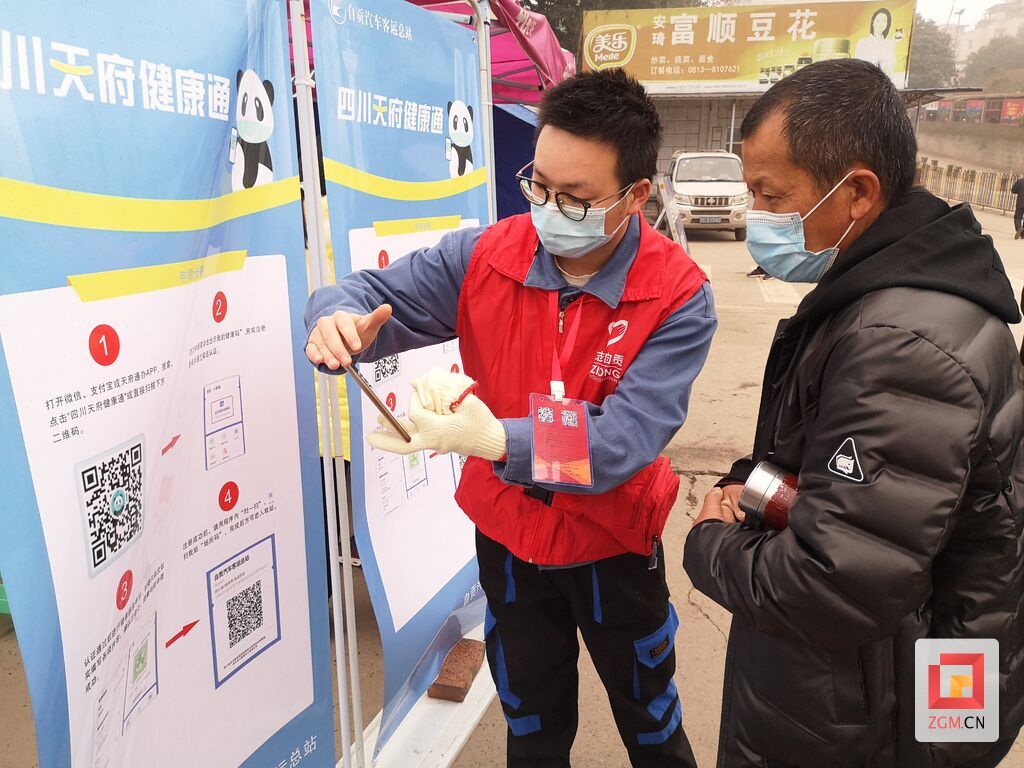 当天,记者在自贡市客运站看到,与往年熙熙攘攘的客流相比,今年显得异常冷清,据了解,客流量同期下降了50%,但依然能看见一群春运志愿者忙碌的身影:开展体温检测、指导使用四川天府健康通、宣传防疫知识、维护秩序、乘车指引……忙得不亦乐乎。他们犹如“精灵”一般,活跃在进出站口、售票处、安检区,面带微笑,为过往旅客提供志愿服务。他们身后“青春志愿·爱在旅途”的八个大字格外耀眼。