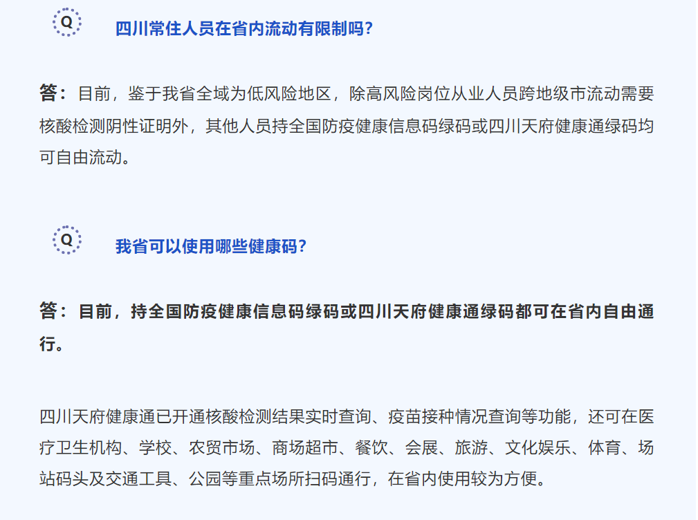 当然,也别忘了提前申领川内出行必备神器——四川天府健康码,一人一码,亮码通行,减少查验过程中的等待时间!