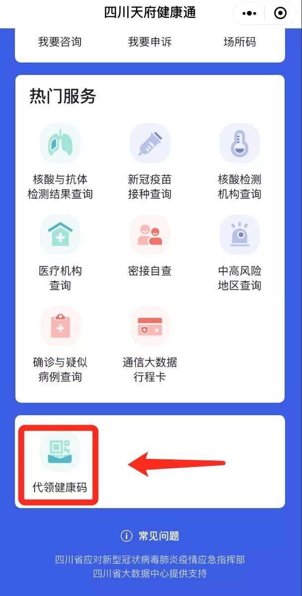 据牵头研发“四川天府健康通”平台的四川省大数据中心相关负责人表示,1月28日“四川天府健康通”新增“代领健康码”功能。