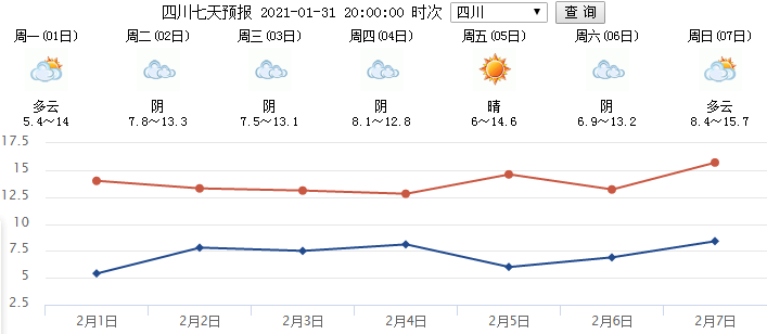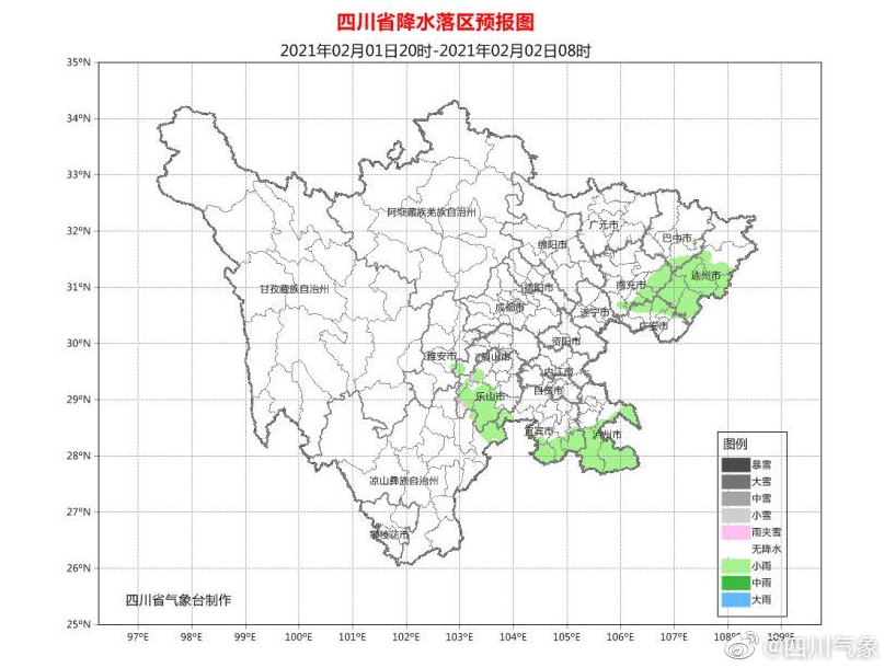 2月2日白天到晚上:盆地各市阴天间多云,其中巴中、达州、南充、广安、雅安、乐山、眉山、泸州8市有分散小雨;甘孜州南部多云间阴有分散阵雨,川西高原其余地方和攀西地区晴间多云。