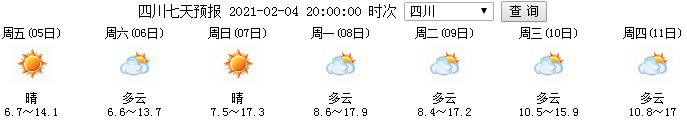 从今天2月5日开始,直到春节小长假前,四川各地的天气将以多云、晴天为主,气温日渐暖和。