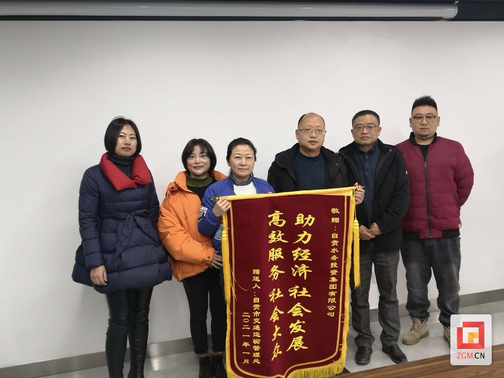 2月3日下午,自贡市道路交通运输服务中心(原自贡市交通运输管理处)干部一行来到自贡水务投资集团有限公司,送上一面写有“助力社会经济发展 高效服务社会大众”的锦旗,对集团急用户之所急,积极作为,迅速化解用户突发的大量漏水问题,保障办公大楼消防用水安全表示诚挚的谢意。