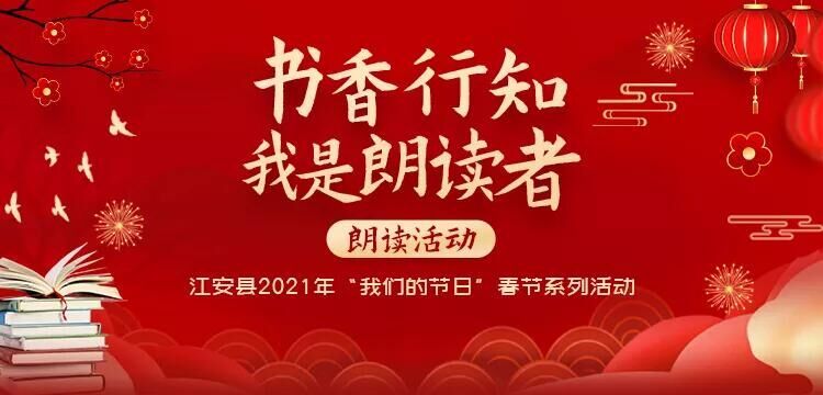 为进一步推动江安县“书香江安 悦读橙乡”全民阅读品牌建设,在全县形成爱读书、读好书、善读书的浓厚氛围,为节日增添一抹书香气息。由江安县委宣传部、县全民阅读活动指导委员会办公室主办的“书香行知·我是朗读者”朗读活动正式开启。活动设网络人气奖和最佳朗读奖,奖项分为荣誉证书+奖金。进入“江安发布”公众号,在公众号内菜单栏 “春节活动”中点击“我是朗读者”,选取朗诵文章和配乐进行创作,上传作品。快来参与吧!◆详情请点击