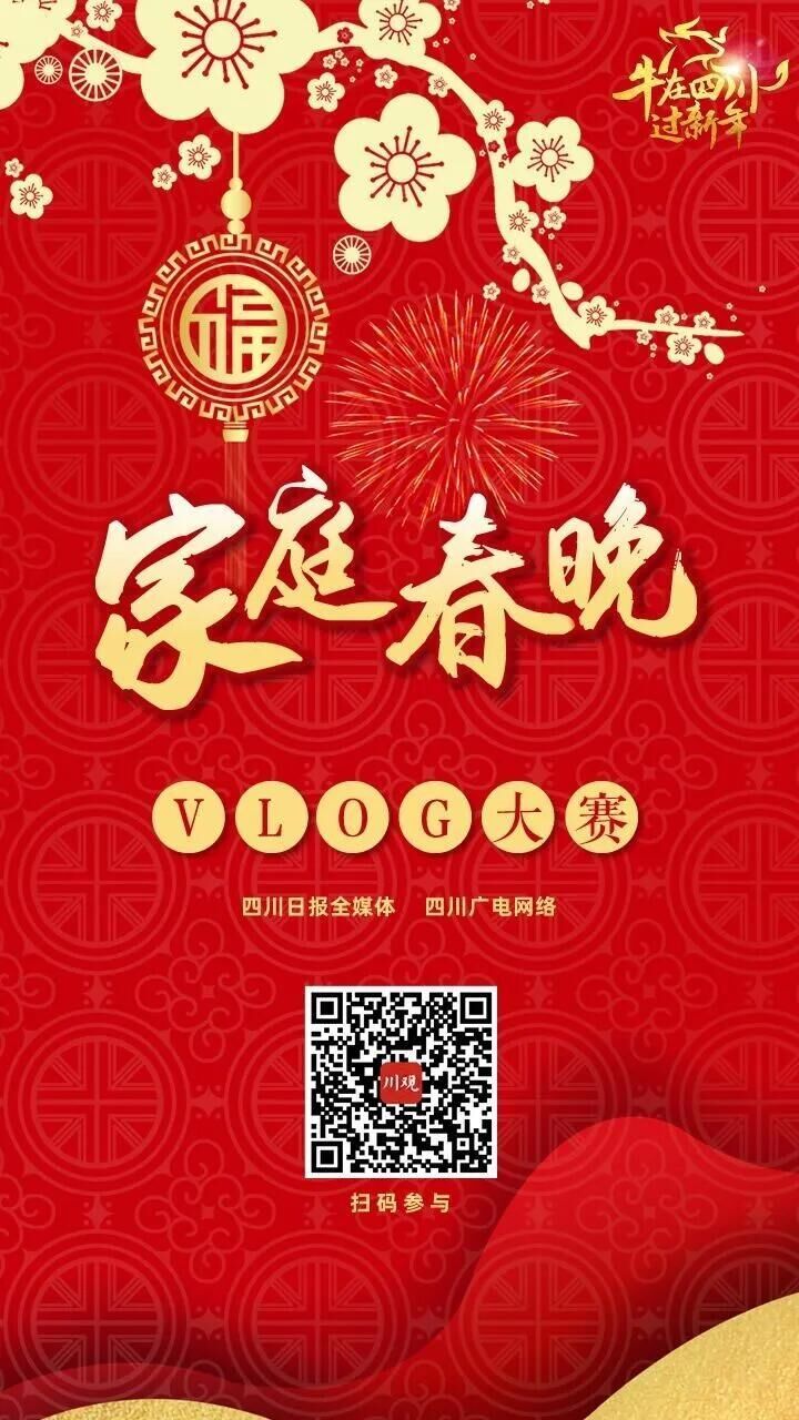 即日起至2月26日,由四川日报全媒体联合四川广电网络共同主办的“牛在四川过新年——家庭春晚Vlog大赛”即将开启,向所有留在四川过年网友发出邀请,丰厚奖品等你来挑战。比赛以家庭春晚为主题,形式不限,歌舞表演、诗文朗诵、乐器演奏、围炉夜话,或者是别出心裁的宅家之乐,用镜头记录下春节里的幸福家庭年味儿。(欢迎扫码参与)