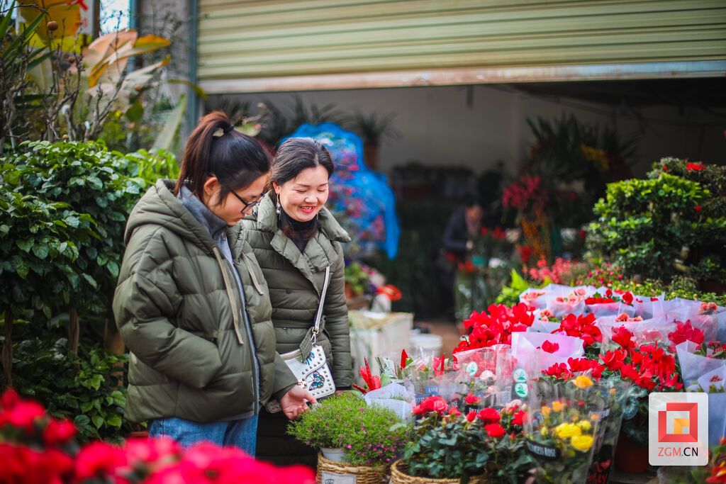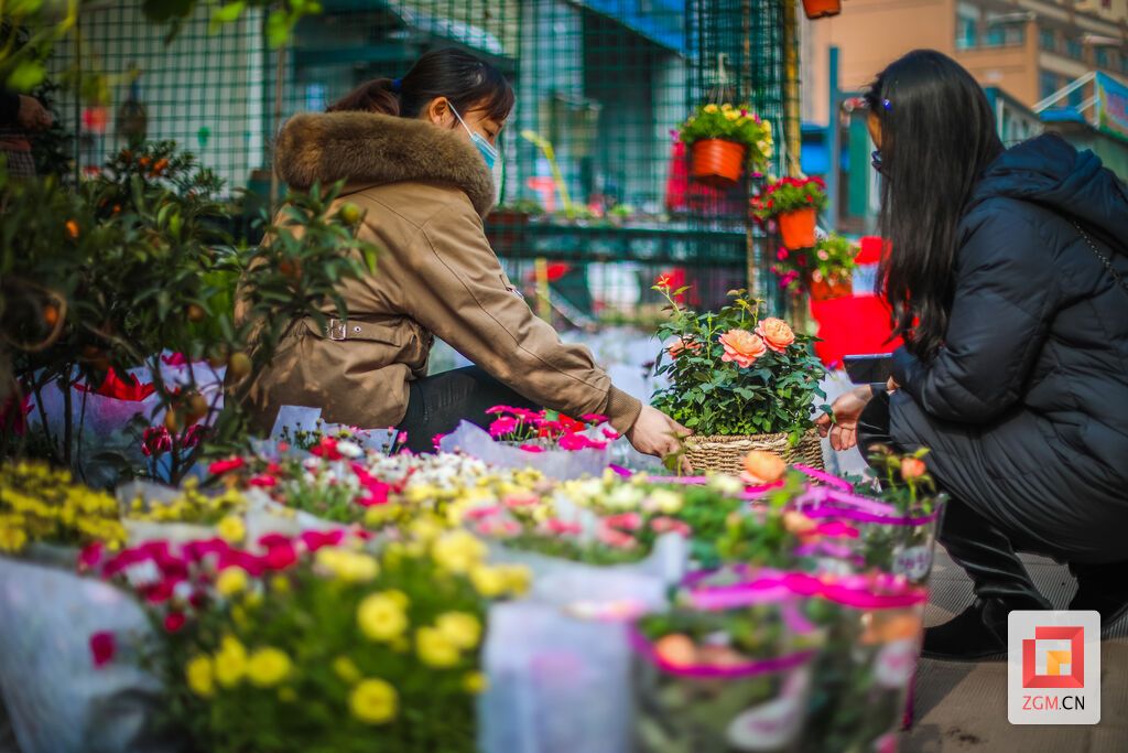 靓丽绽放的月季、蝴蝶兰、杜鹃花,寓意美好的发财树、“鸿运当头”、金桔……各种花卉琳琅满目。“颜色鲜艳的花卉比较喜庆,一些小盆栽的价格也不贵,二三十元就能买一盆,销量很好。”一鲜花店店主告诉记者。