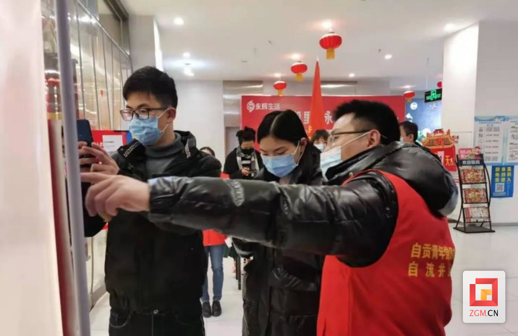 ▲ 春节期间,大安区凤凰街道远达花园社区联合市中医院、区住建局、区农业农村局等区级党员志愿者突击队在辖区各疫情防控点推广四川“天府健康通”健康码、场所码。