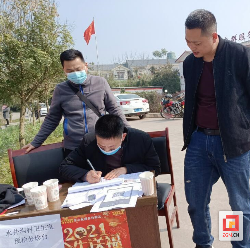 ▲ 2月12日,沿滩区黄市镇水井沟村值守点,基层干部进行疫情防控登记工作。