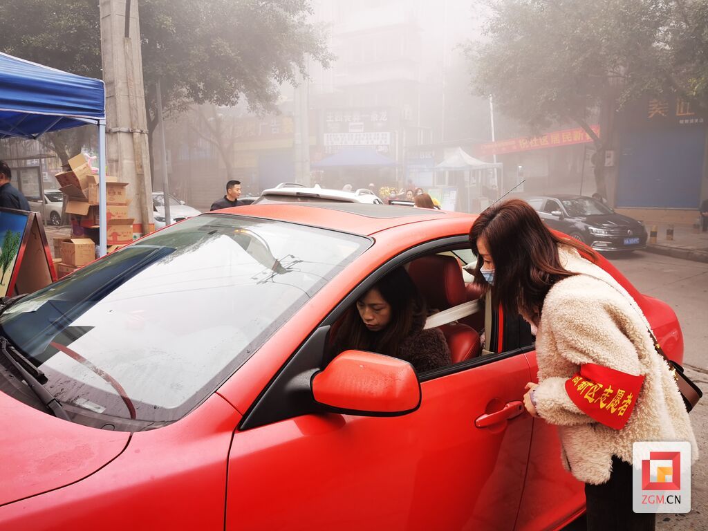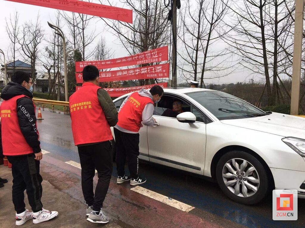 ▲ 2月12日,农历大年初一,市级某事业单位工作人员作为志愿者,来到自流井区丹桂街道桂花社区对来往车辆和进出人群开展扫码、亮码验证工作。