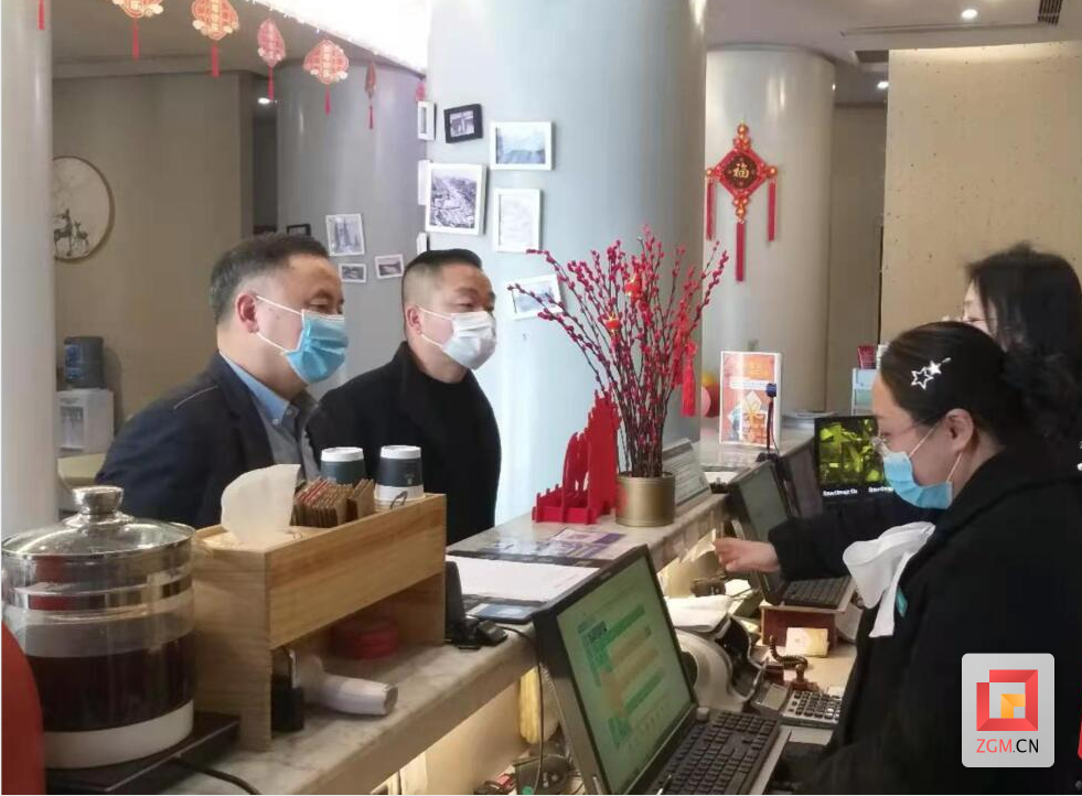 ▲ 2月13日,市商务局工作组,对市区内的酒店开展防疫措施落实情况督导。