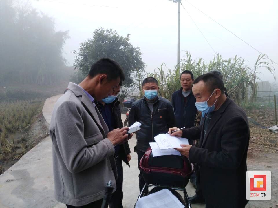 ▲ 2月12日,富顺县基层干部到村组开展摸排工作。