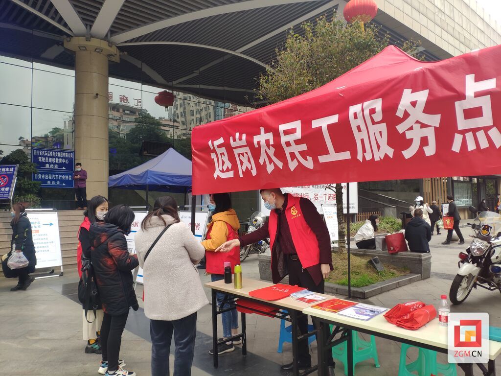 “从上班第一天(农历正月初七)开始设立返岗农民工服务点,每天有3名志愿者在岗服务。”志愿者卢娟介绍,今年的农民工返岗服务以政策咨询、法律援助、疫情防控以及旅途服务为重点,做好服务保障工作,确保农民工安全有序返岗。