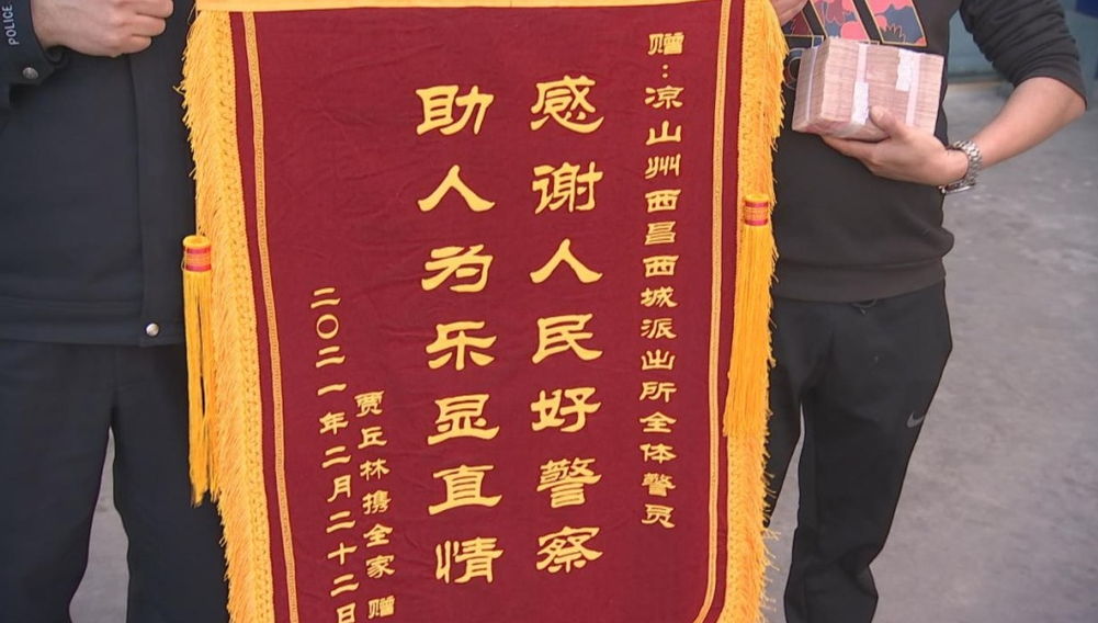 2021年2月22日0点43分,西昌市公安局接到群众报警称,在航宇中路老厨房门口遗失十万元现金。失主因酒醉,记不清楚自己搭车路线及现金遗失的具体情况,追回现金工作难度非常大。西昌市西城派出所闻警而动,急民之所急,立即派出警力分别进行调查,通过对周边群众商铺开展走访、调取周边监控视频后,经过3小时的摸排调查、车辆比对,最终确定车辆,并与驾驶员取得联系,帮助失主找回了遗失的十万元现金。