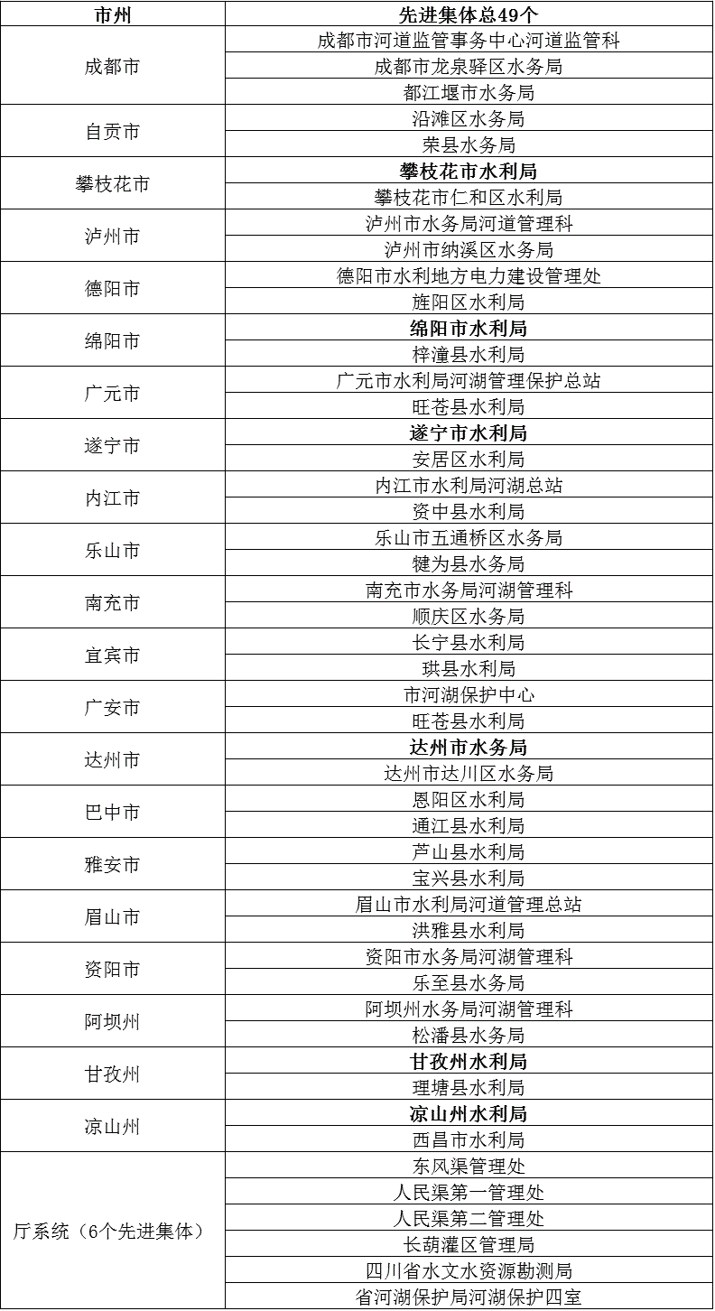 2020年四川省河湖管理保护工作先进集体名单