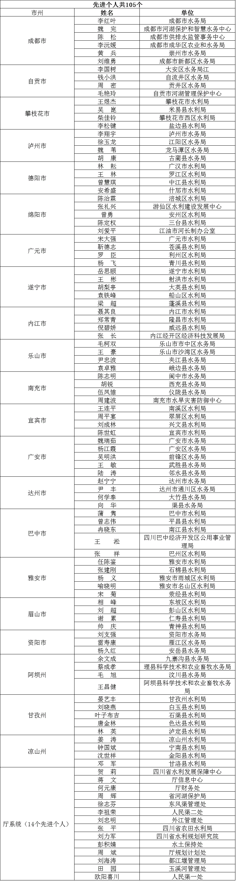 2020年四川省河湖管理保护工作先进个人名单