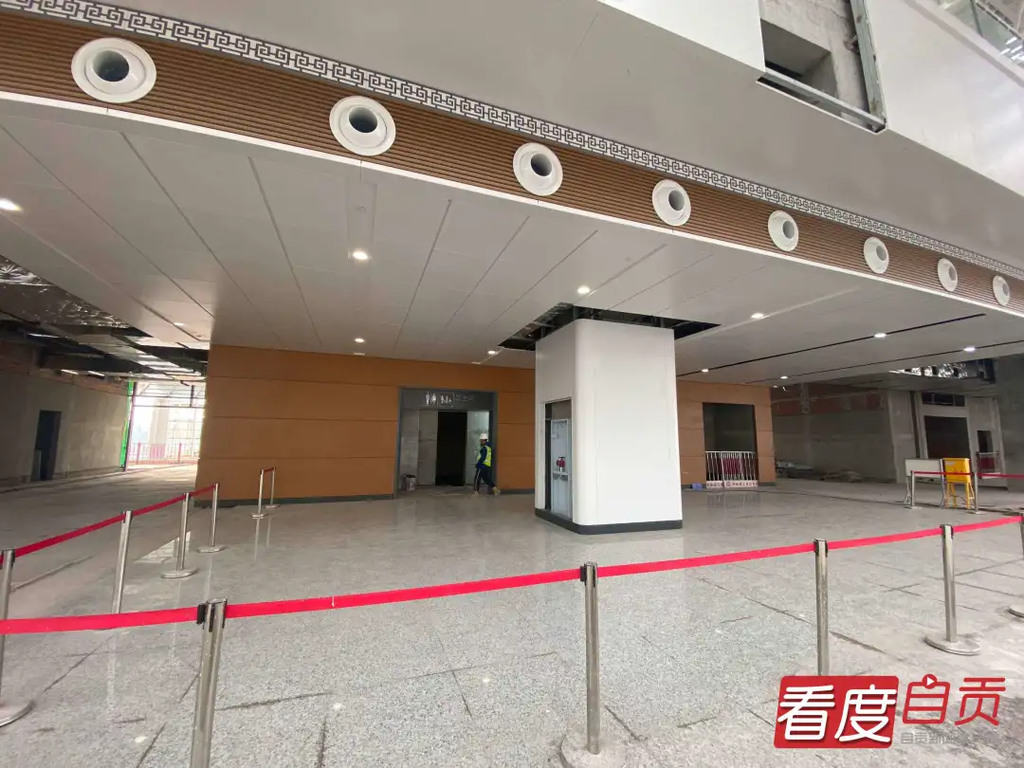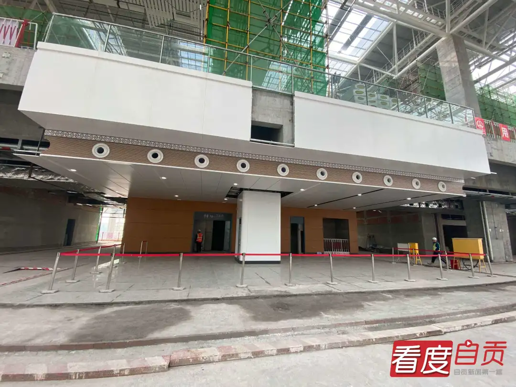22日一早,自贡高铁东站就已经热火朝天。砌筑工、抹灰工、架子工、钢筋工、电工来来往往穿梭在工地内外,挖掘机不停作业,大货车往来不息,在千年盐都勾勒出一幅“大干快上,只争朝夕”的火热景象。记者走近候车大厅看到,整个候车厅已经进入内部装修阶段,其中一小块区域的卫生间样板间已经装修好,智能化的卫生间能够给游客提供更好方面的服务体验。