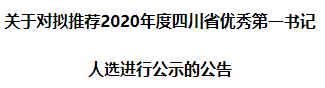 按照省委组织部统一安排,全省将集中表扬一批优秀第一书记。根据《关于评选推荐2020年度省内对口帮扶、凉山州综合帮扶以及第一书记、一线扶贫干部表扬对象的通知》(川组通〔2021〕3号)要求,经自下而上逐级差额推荐,层层考察评选,我市产生拟推荐人选13名:其中贫困村第一书记推荐人选7人,非贫困村第一书记推荐人选6人。为充分体现公开、公平、公正原则,现将我市拟推荐人选予以公示。