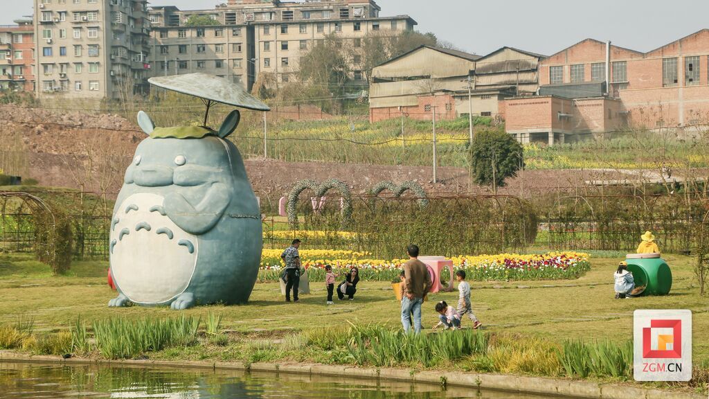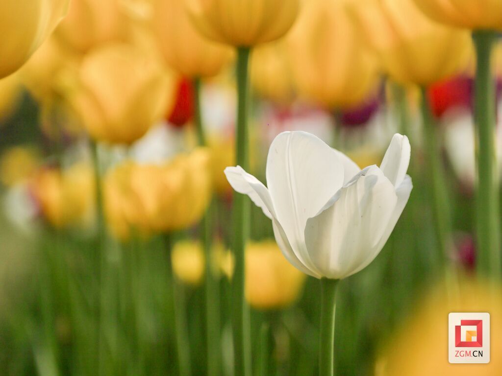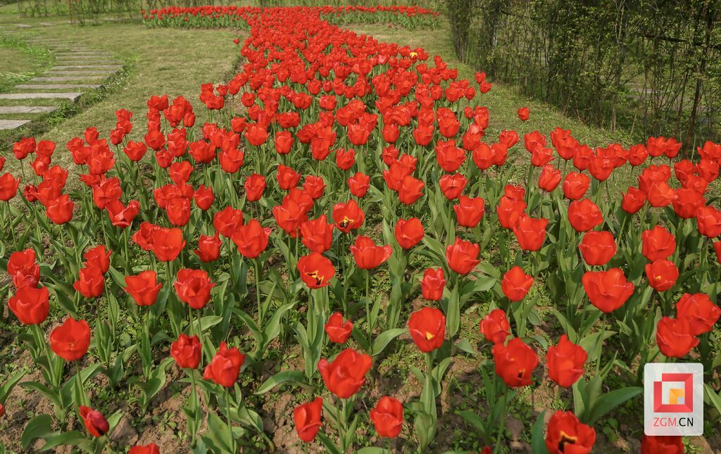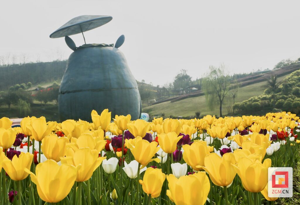进入观音湖景区,别致的“观音湖”标志、波光粼粼的湖水、水上长廊映入眼帘。不经让人疑惑,哪儿有郁金香呢?
