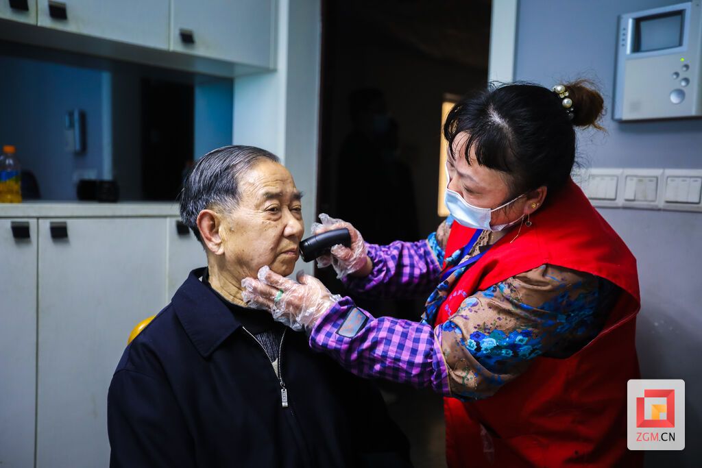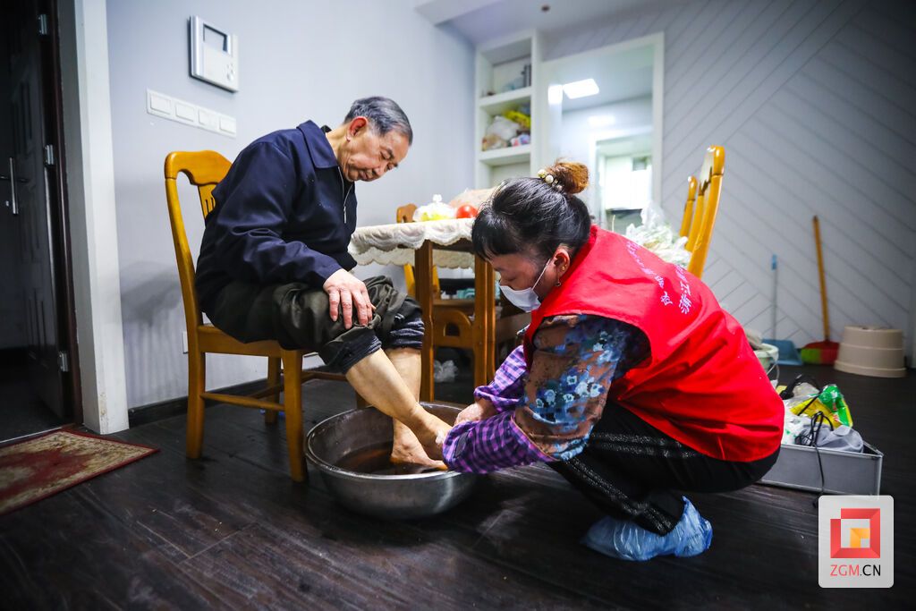 2月22日,家住龙城社区、今年85岁的单以泽老人家里格外热闹,一群穿着统一服装的男女就像回到自己家里一样,有的擦窗户,有的收拾厨房。单以泽老人经过一番理发、修面、按摩、泡脚之后精神了许多,负责“操刀”的居家养老服务人员王萍称以前在十字口开过理发店,对自己的手艺十分自信。单以泽老人也感受到了居家养老后续的跟踪服务。