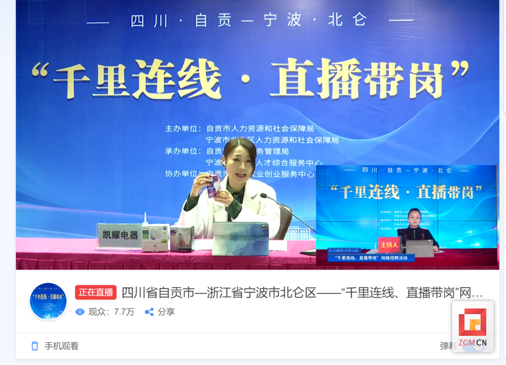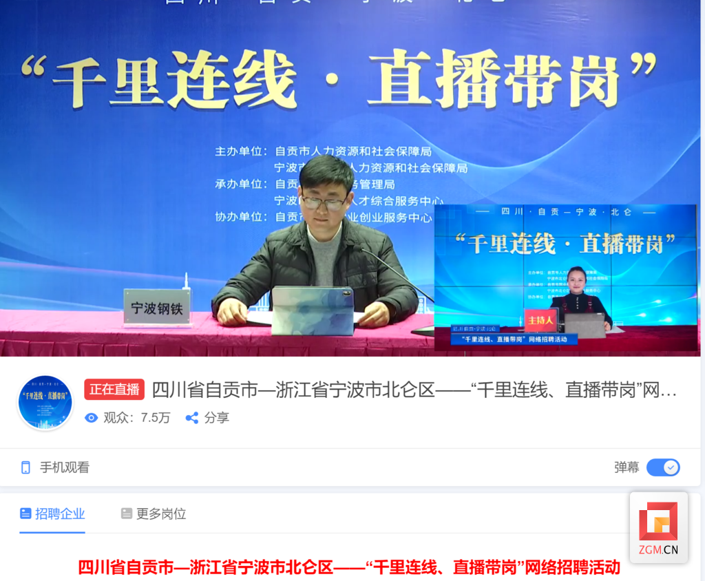 3月2日15时,令众多求职者翘首以盼的自贡北仑“千里连线 直播带岗”网络直播招聘活动准时开始。宁波钢铁有限公司的招聘专员李俊通过网络,向我市求职者推介岗位信息,将就业岗位送到网友“面前”。