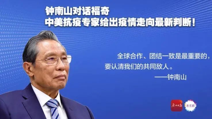 关于全球合作,钟南山认为,新冠病毒是全人类的敌人,假如新冠病毒还在个别国家蔓延,新冠肺炎就不可能在全世界得到控制。我们想终止这个疫情,就需要由每个国家的决策层基于科学、基于证据去进行恰当的决策,大家都尽最大的努力,所以需要全球的团结。