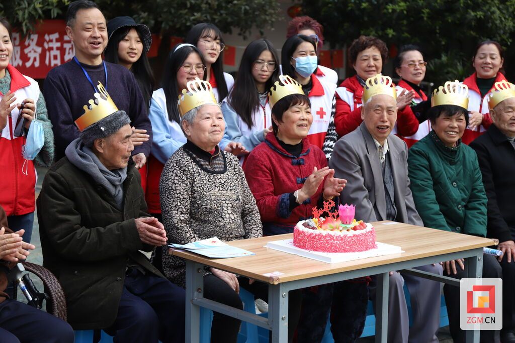在击鼓传花的游戏中,老人和志愿者轮番表演节目,将活动气氛推向高潮。志愿者们还点燃生日蜡烛,为老人们庆生祝寿,祈福他们年年有今日、岁岁有今朝。