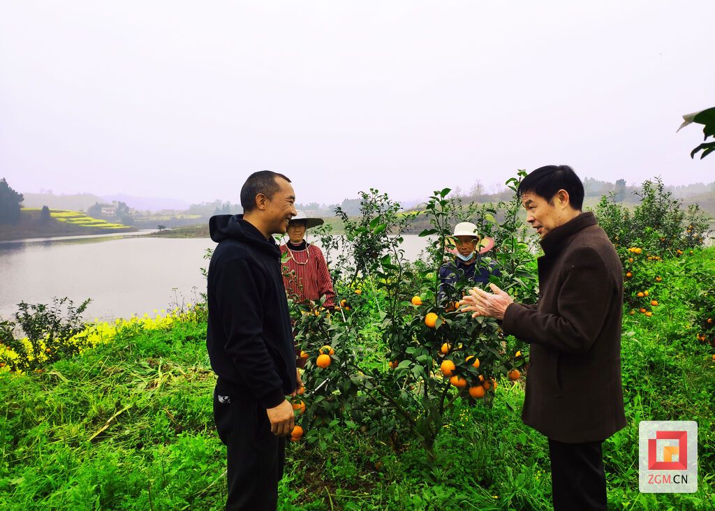“枝条顶端叶片沿中脉呈现退绿斑驳,这是典型的缺锌的表现。还有一些叶子出现不均匀的黄化,甚至叶面扭曲、卷曲,这是缺钾的表现……”3月5日上午,富顺县板桥镇朱扁村10组柑橘园内,农业植保专家詹俊良详细向种植户李文虎讲解柑橘管护知识,指导如何做好病虫害防控。