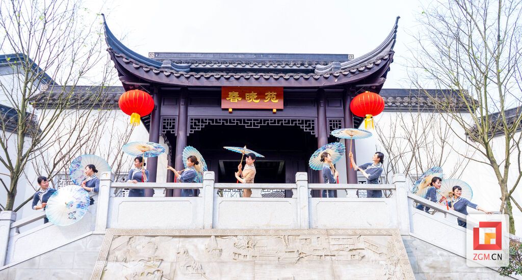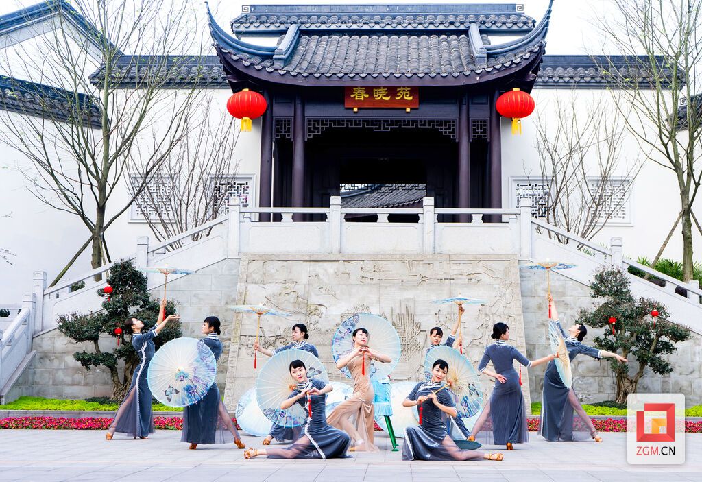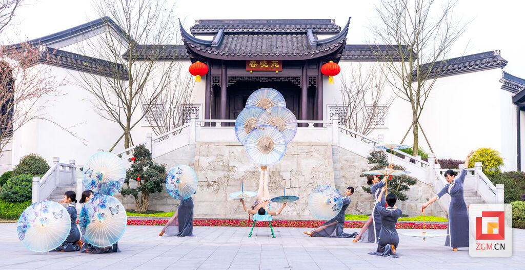 灵秀而温婉的女子撑着一柄油纸伞,慢步走在青石板上,沿着小桥翩跹而过,衬着白墙灰瓦勾起百转千回的柔情……只见,花伞在演员的脚尖上、手指尖上任意旋转、跳跃、翻腾。