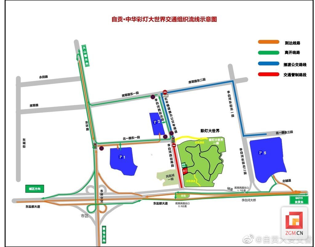 自贡大安交警也据此发布温馨提示:中华彩灯大世界周边1、2、5号停车场共计4000余个,建议观灯游客从汇东公交枢纽站或光大街乘坐免费公交摆渡车前往观灯。