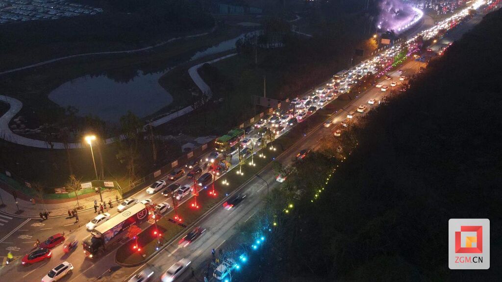 目前,交警已对周边道路进行临时交通管控,东盐都大道启用单向占道停车,请广大游客前往自贡客运公交枢纽站和光大街乘坐免费公交摆渡车前往观灯。