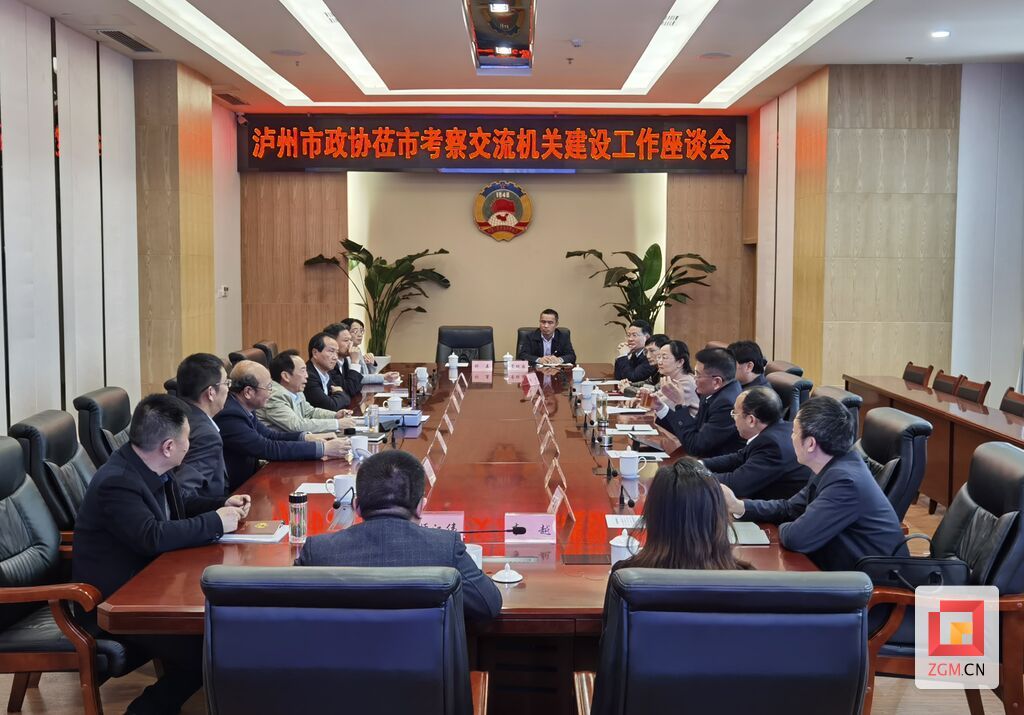 考察组一行还实地察看了市政协机关建设情况,双方就机关建设工作召开了座谈会。在听取市政协机关建设工作情况介绍后,田亚东表示,自贡市政协在推进机关建设方面做了大量卓有成效的工作,考察组深受启发,将把好的经验和做法带回去,并进一步加强两地的考察交流,实现资源信息共享,互利共赢。游开余对泸州市政协考察组一行的到来表示欢迎,希望两地能加强交流合作,互学互鉴,共同推动机关建设工作再上新台阶,推动政协工作高质量发展,更好地为两地人民谋福祉。
