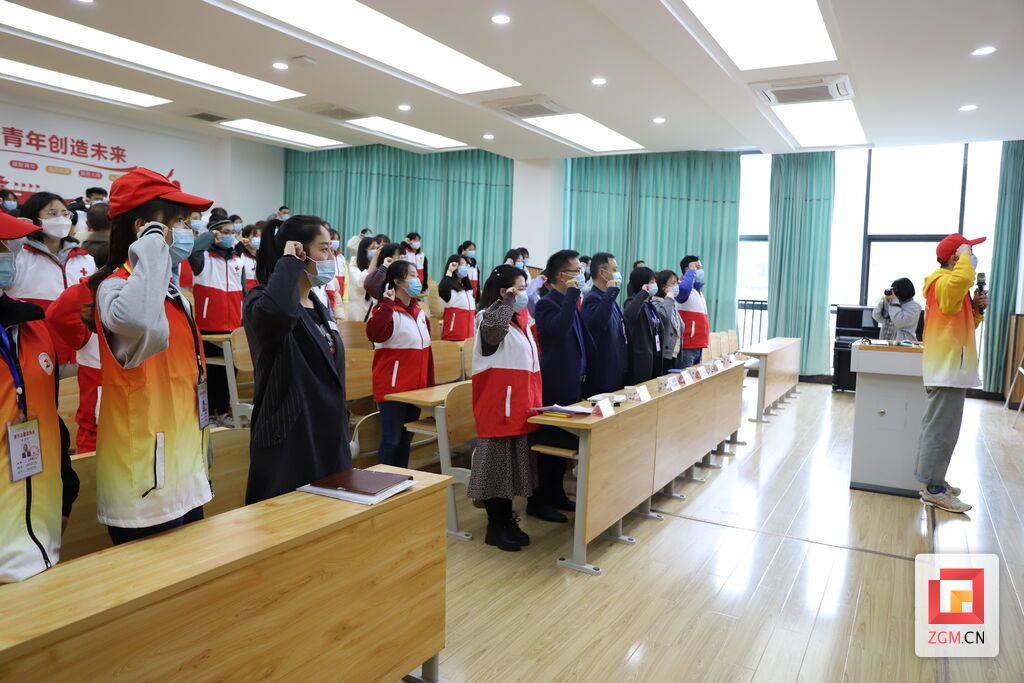 启动仪式上,市红十字会工作人员为“救在身边”红十字助力疫情防控学校健康促进项目授牌,向四川卫生康复职业学院红十字会授旗。红十字志愿者讲述造血干细胞捐献事迹,分享遗体器官捐献协调员工作。