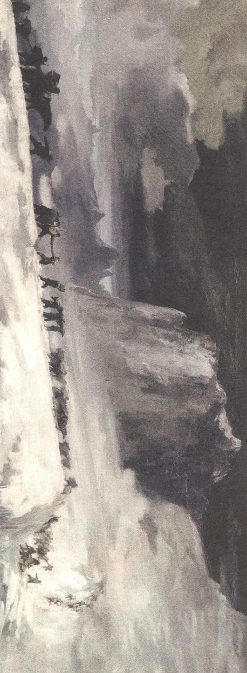 用远处的这种乌云来衬托近景的冰坡,冰坡的处理上用灰色或冷灰色、暖灰色这样一些色彩的变化,来调整整个画面的一些色彩的构成,一气呵成。