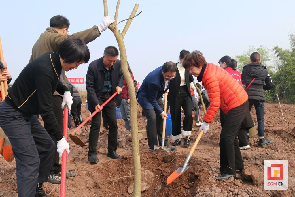 据悉,“盟沿合作林”也是自贡民盟以后每年的固定植树地点,占地10亩,主要栽种蓝花楹等经济观赏植物。揭碑仪式后,盟员们三三两两一起拿着锄头、提着水桶、扶着幼苗、培土夯实……大家分工协作、配合默契。一株株新栽植的小树苗在明媚的春光中泛着新绿。