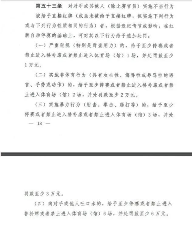 从中也可以看出,此前对于在赛场上向对手或比赛官员吐口水的行为,处罚尺度并不是很一致,这次中国足协颁布最新的纪律准则,也是制定了统一的处罚标准,让判罚更有依据。