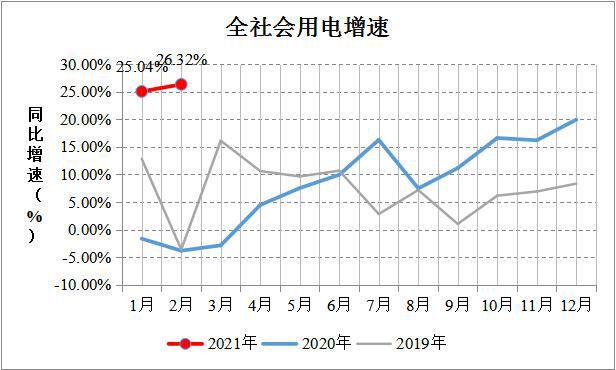 国网四川省电力公司预计,3月四川全社会用电量仍然可以延续20%以上的增长,2021年全社会用电量有望突破3000亿千瓦时大关,同比增长8%。