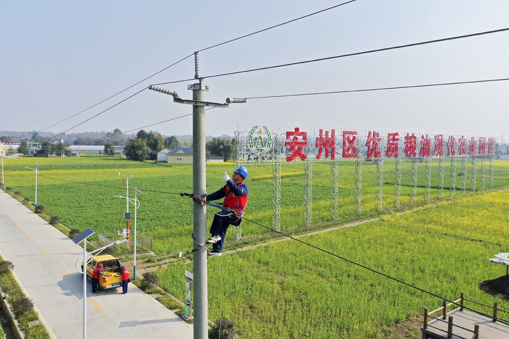 国网绵阳供电公司电管家在维护安州区优质粮油现代农业区的输电线路。(田海 摄)