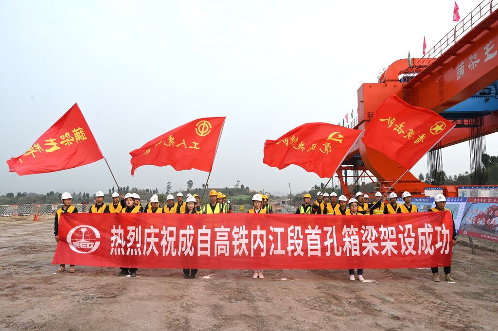 中铁五局承担了成自高铁CZZQ-6标571孔箱梁的预制架设和约53公里无砟道床铺设、约16公里桥梁、8.6公里路基、0.7公里隧道建设等施工任务。自进场以来,优化施工组织促进度、精细管理保质量、创新科技提效率,于2020年11月15日成功预制首孔箱梁,并于2021年1月12日、25日先后通过桥梁产品检验和实地核查。