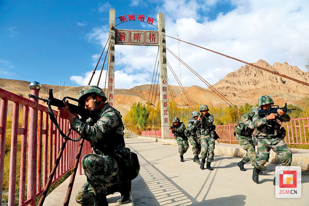图:2020年10月3日,驻守在“西陲第一哨”的新疆军区某边防团斯姆哈纳边防连官兵开展防区执勤战备演练 刘南松摄