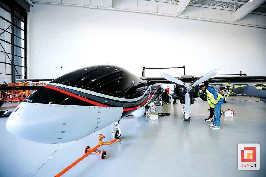图:航空产业园工作人员正在检查无人机