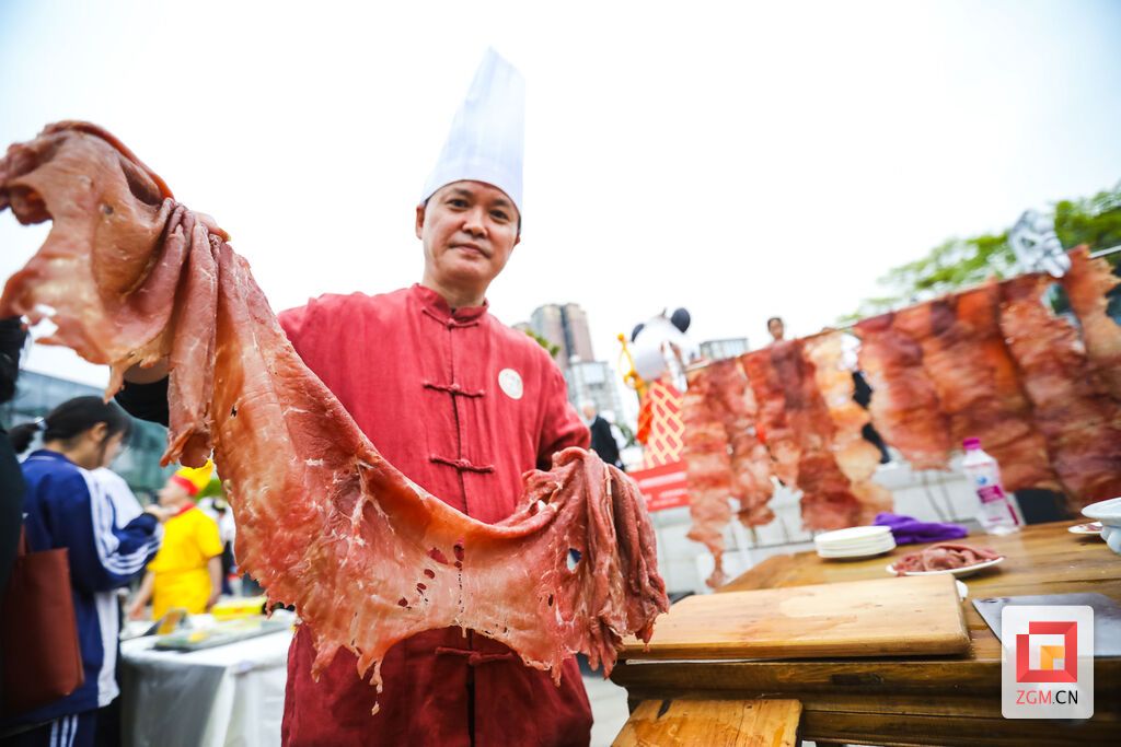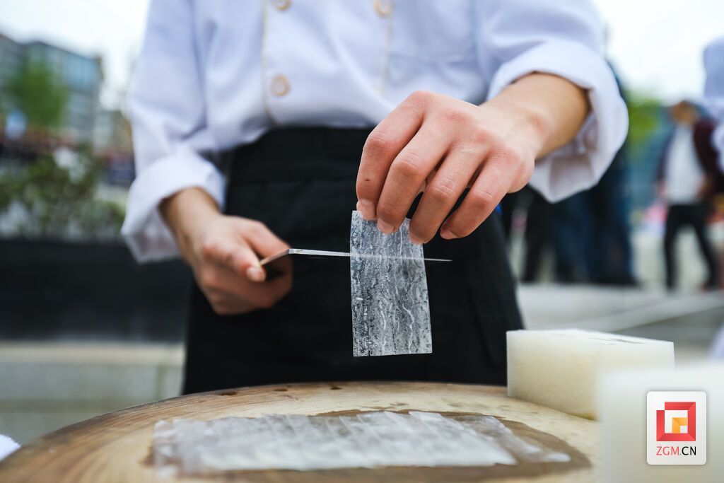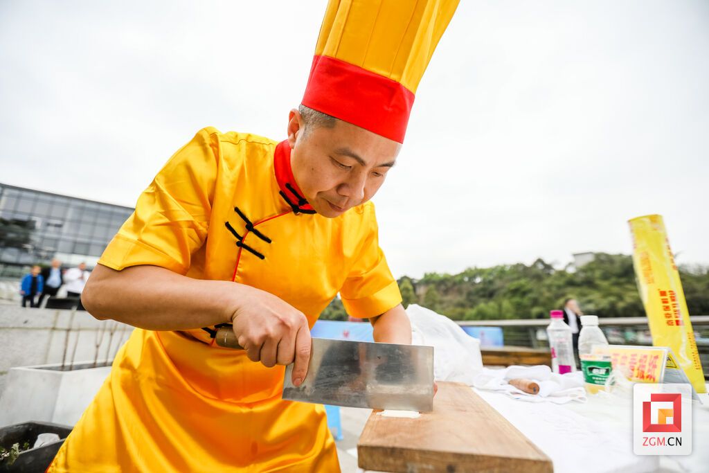 同时,现场还进行了切面穿针、片火鞭子牛肉、切萝卜丝等厨艺展示,多位“牛人”扎实的基本功、娴熟的技艺引来众多市民的不停拍照、点赞。