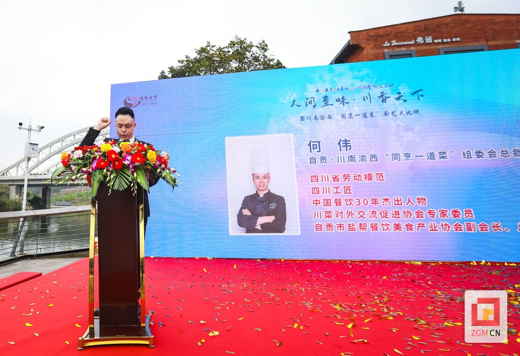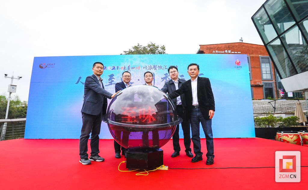 图:随着启动球的按下,自贡市“人间至味 川香天下”川派餐饮汇暨川南渝西“同烹一道菜”厨艺大比拼活动正式启动。