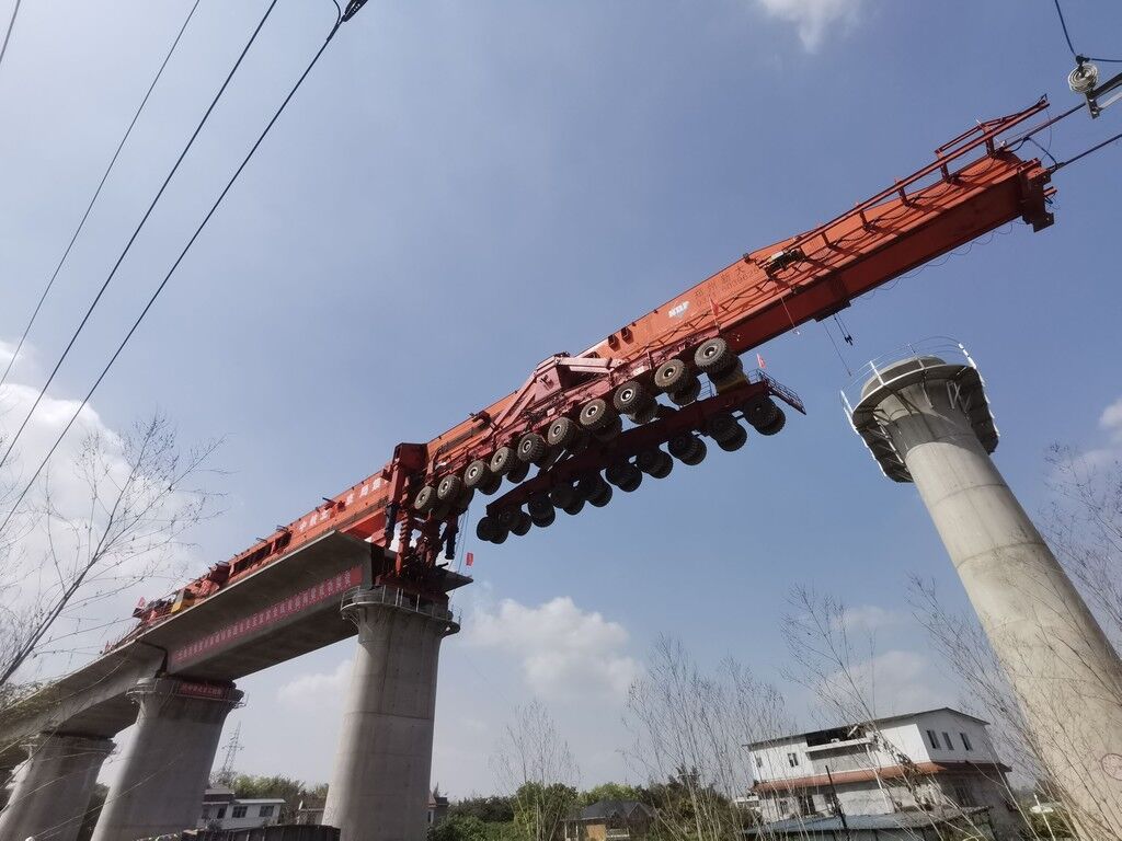 川观新闻记者在现场看到,流动式架桥机长96.5米,宽7.75米,高9米,重720吨,能够承担起重900吨的箱梁。