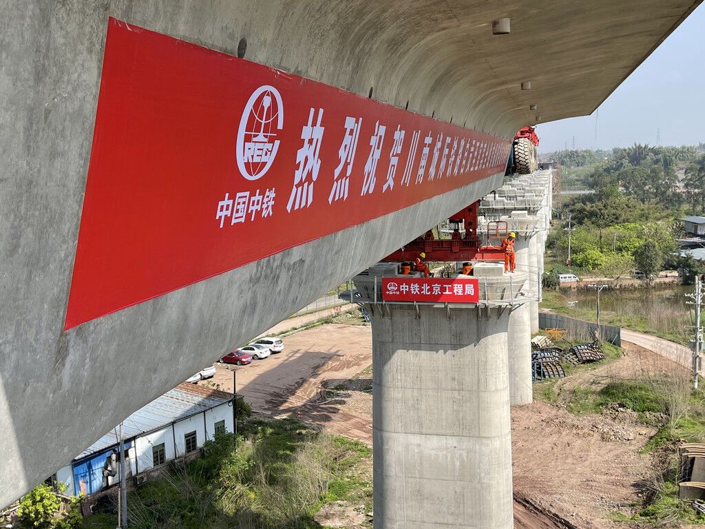 3月23日10时18分许,自贡至宜宾高速铁路(以下简称自宜高铁)首榀箱梁在自贡市沿滩区与富顺县交汇处的釜溪河双线特大桥上成功架设,为这一刻,铁路建设者艰苦奋战了2年。川观新闻记者从成兰铁路有限责任公司获悉,首梁架设成功,标志着自宜高铁由线下工程施工转入线下线上工程同步施工的新阶段。