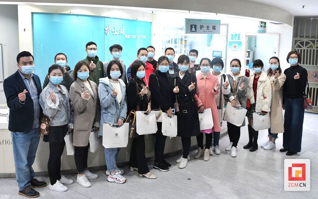 大门口,当看到“四川省自贡市援鄂医疗队武汉‘樱’您而美”的横幅时,自贡的医护人员都湿润了双眼。