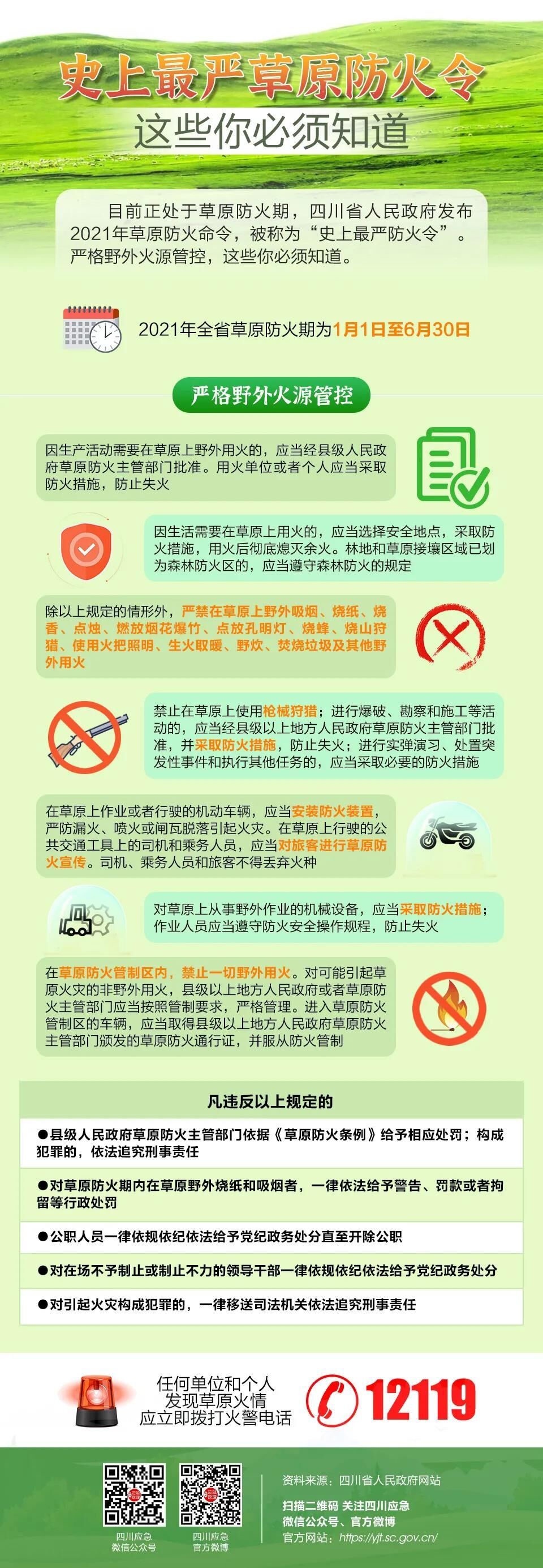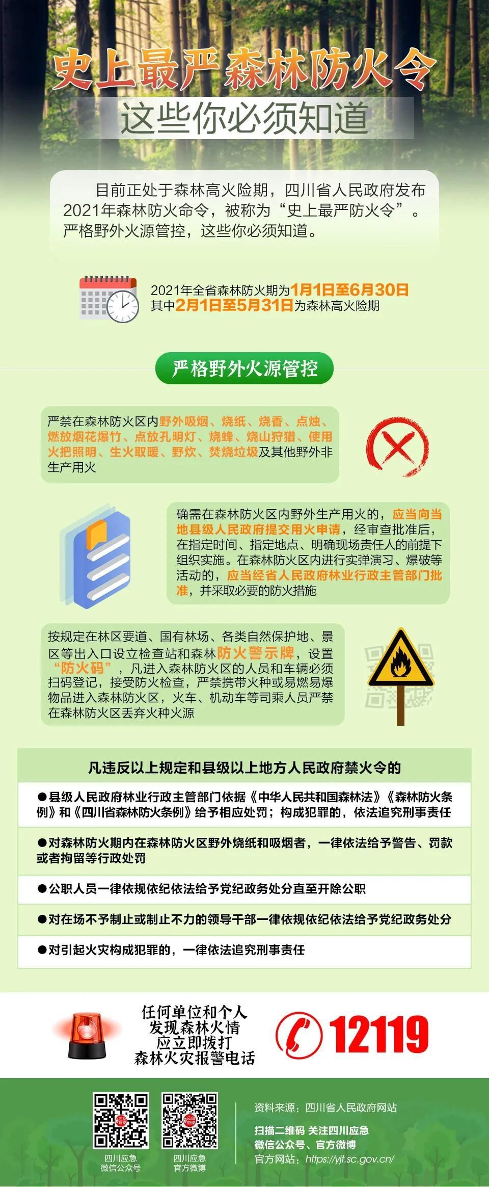 2020年12月30日,四川省人民政府发布2021年森林防火命令和2021年草原防火命令,戳下图了解↓↓