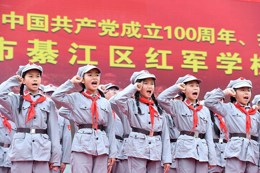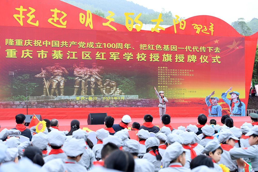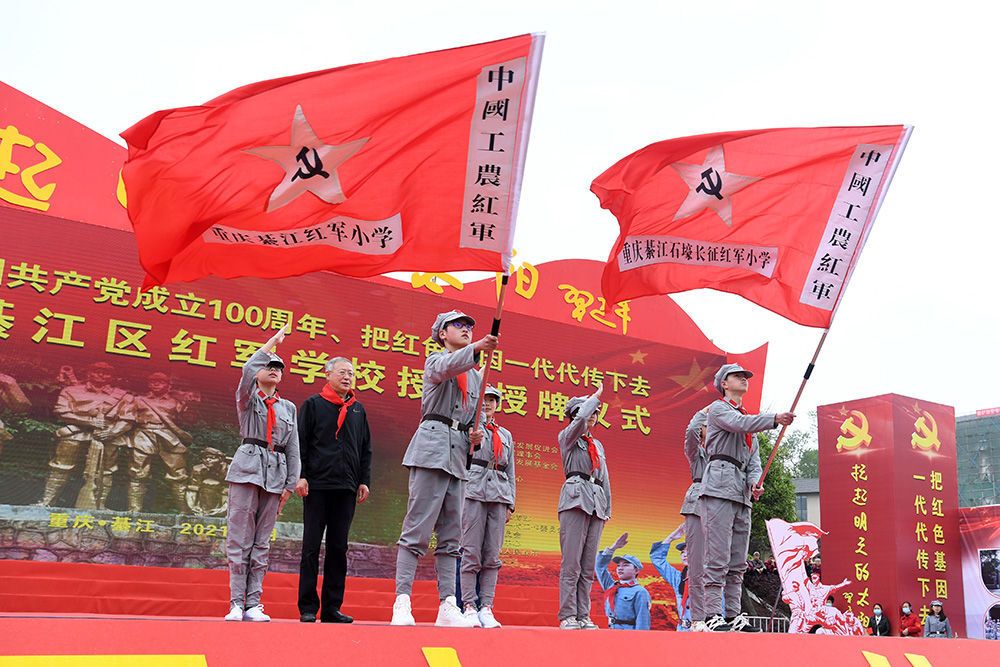 当日,重庆4所红军学校授旗授牌仪式在重庆市綦江区永城镇王良广场举行。