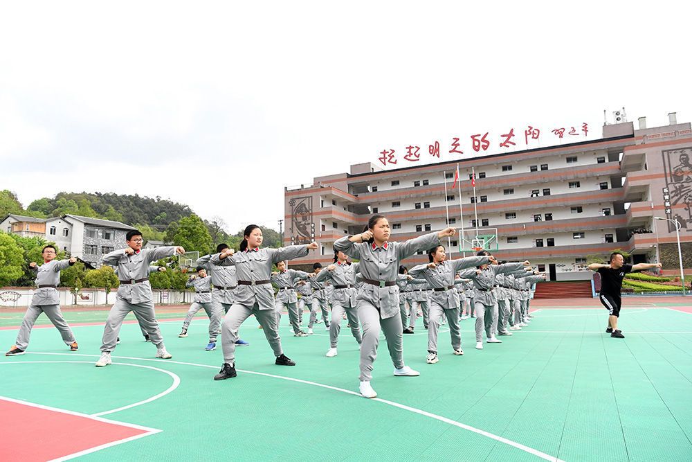 3月27日,中国工农红军王良红军中学学生在操场上练习“小手拳”。新华社记者 唐奕 摄