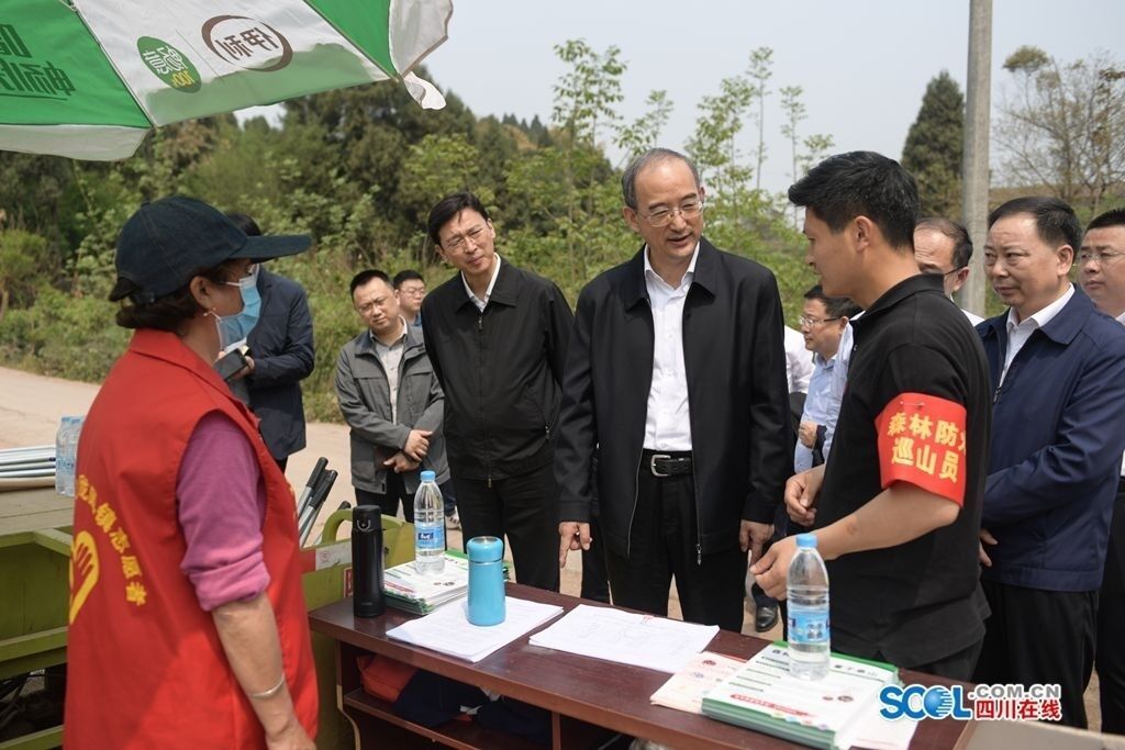 3月30日,黄强临时停车检查遂宁市船山区龙凤镇森林防火进山登记点。